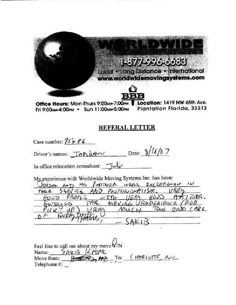 Reputation is hard to build and we appreciate our valued customers in helping us with this task and expressing their moving experience around the web. Nationwide Van Lines performs local moving services in Florida , long distance and international moving services nationwide and worldwide. With our professional and trained staff we provide quality moving experience. We understand how difficult it can be to select the proper moving company for your individual needs and look forward to providing you with the same Quality Moving Service demonstrated within each experience shared amongst the following Moving Company Reviews