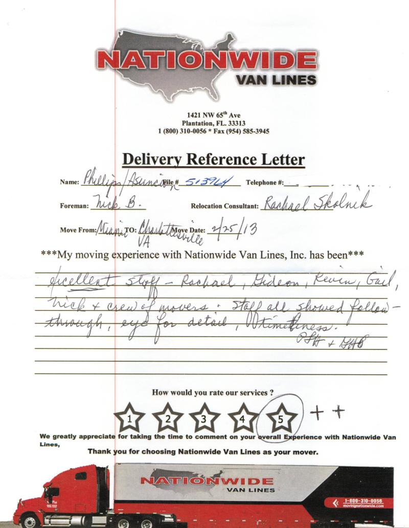 Reputation is hard to build and we appreciate our valued customers in helping us with this task and expressing their moving experience around the web. Nationwide Van Lines performs local moving services in Florida , long distance and international moving services nationwide and worldwide. With our professional and trained staff we provide quality moving experience. We understand how difficult it can be to select the proper moving company for your individual needs and look forward to providing you with the same Quality Moving Service demonstrated within each experience shared amongst the following Moving Company Reviews
